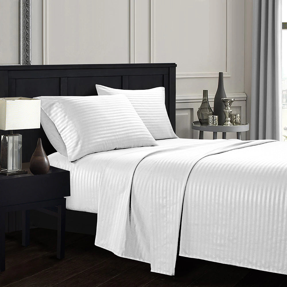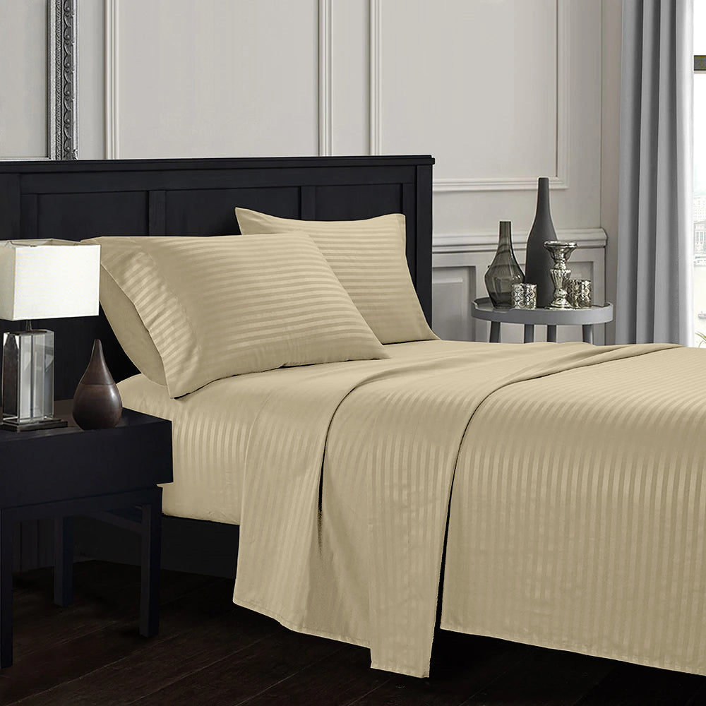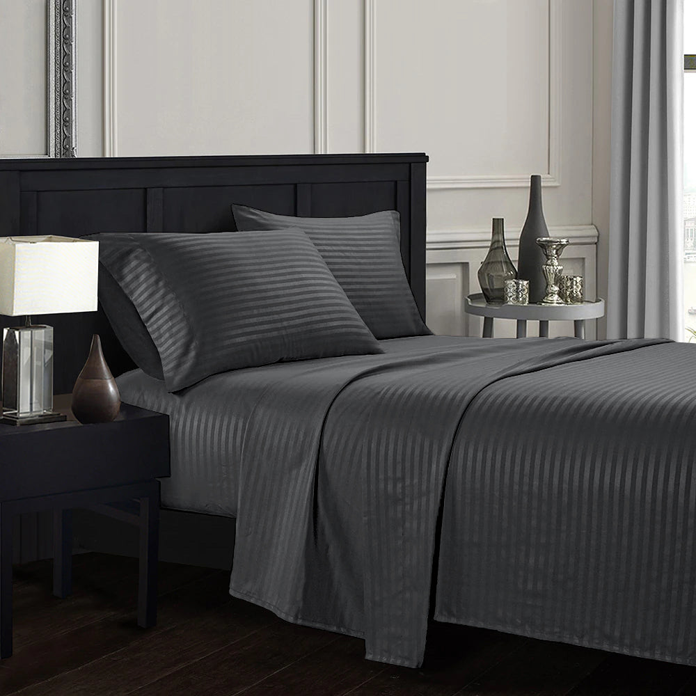 Sábana de lujo con delicadas líneas satinadas que aportan elegancia y frescura al descanso. Su textura suave y transpirable ofrece una sensación envolvente de confort, ideal para quienes buscan un toque sofisticado y moderno en su habitación.